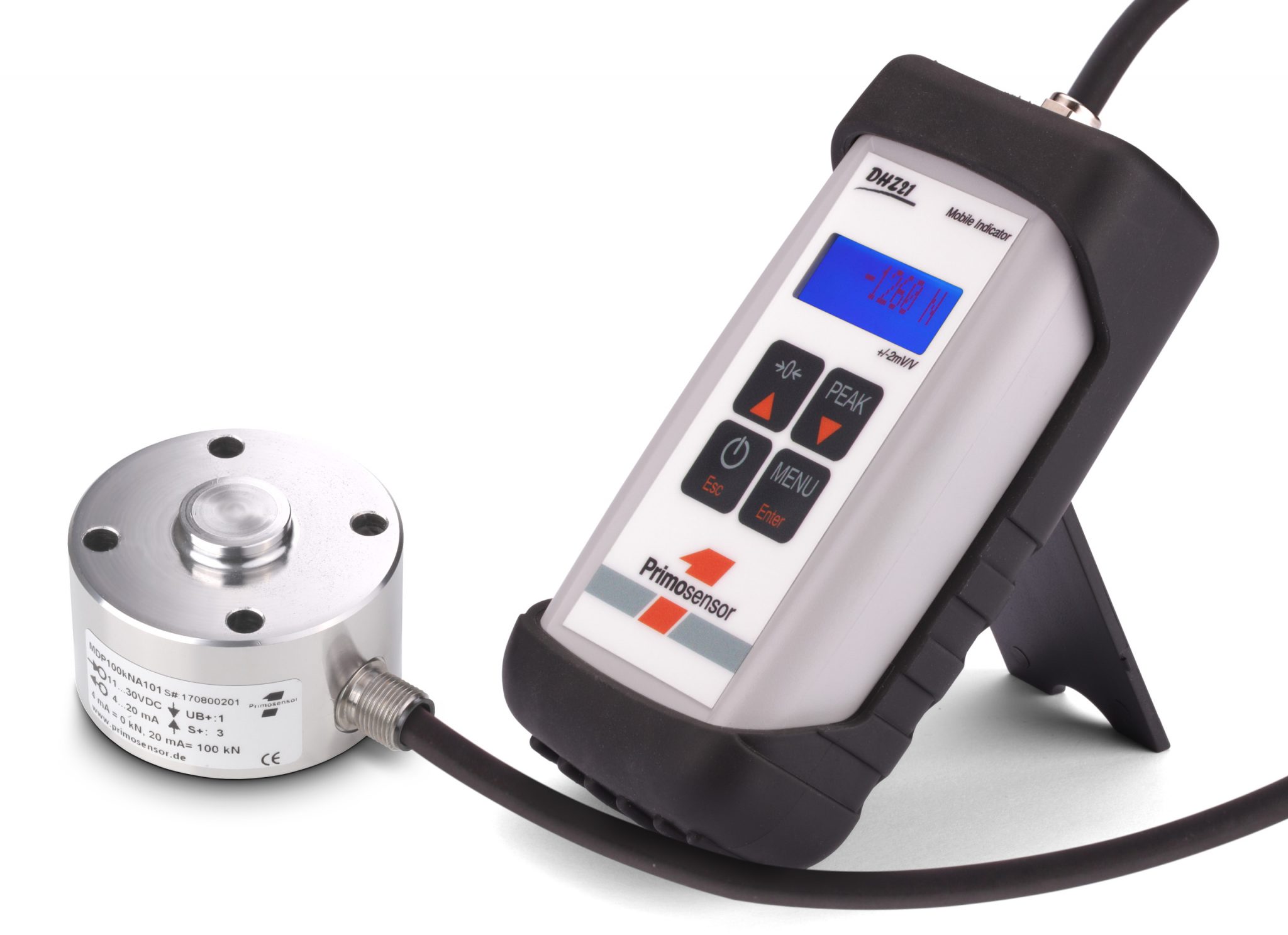 The Test & Measurement force measuring system TMS2 as a calibrated measuring unit is suitable for measuring and displaying medium to high compression forces in laboratories, machines and plants. Due to the compact design of the force transducer MDP, forces up to 100 kN can be measured reliably even in confined spaces. Due to the compact design of the force transducer MDP, forces up to 100 kN can be measured reliably even in confined spaces. The display unit DHZ21, which is permanently connected to the force transducer by cable, supplies the force transducer with energy and displays the applied force directly in N or kN.