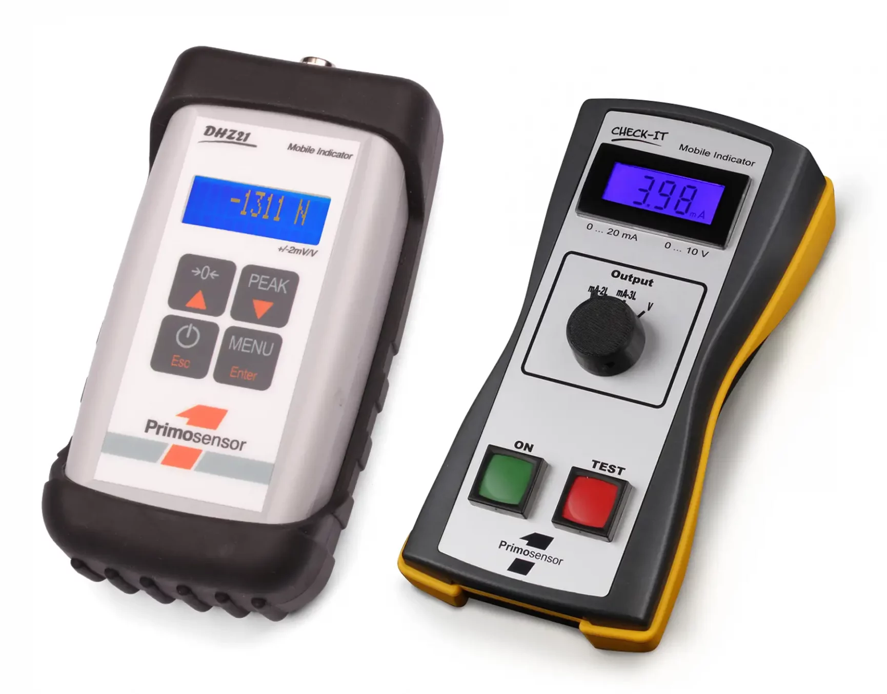 3,5-stelliges mobiles Anzeigegerät zum Prüfen von Sensoren mit Industrieausgangssignalen 0/4…20 mA sowie 0..10 V. Das Gerät ist batteriebetrieben und eignet sich deshalb insbesondere für den Einsatz vor Ort, zum Beispiel bei Serviceeinsätzen und Inbetriebnahmen. Ohne Aufwand kann die Funktion des Sensors geprüft werden. (Die Testfunktion der Primosensor SIL-Kraftsensoren kann aktiviert und überprüft werden.)